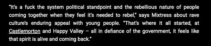 EDM raves and the broader culture they promote can operate as what political theorist Chantal Mouffe would recognise as “agonistic spaces”: radically pluralist environments, held together by shared practice, where difference is suspended long enough for something collective to emerge. In a political landscape increasingly dominated by passive citizens choosing between equally disappointing and distant elites, EDM culture projects something radically different. It provides a space where people can express themselves freely, on equal footing, and where they can experience what it’s like to be in an environment with limited hierarchy besides the DJ booth itself. It is no coincidence that the governments which felt most threatened by it, from Thatcher’s Britain to Meloni’s Italy, moved quickly to criminalise it. They understood, perhaps more clearly than the ravers themselves, that a culture teaching people how to self-organise and produce solidarity is not apolitical. It is politics by other means.
